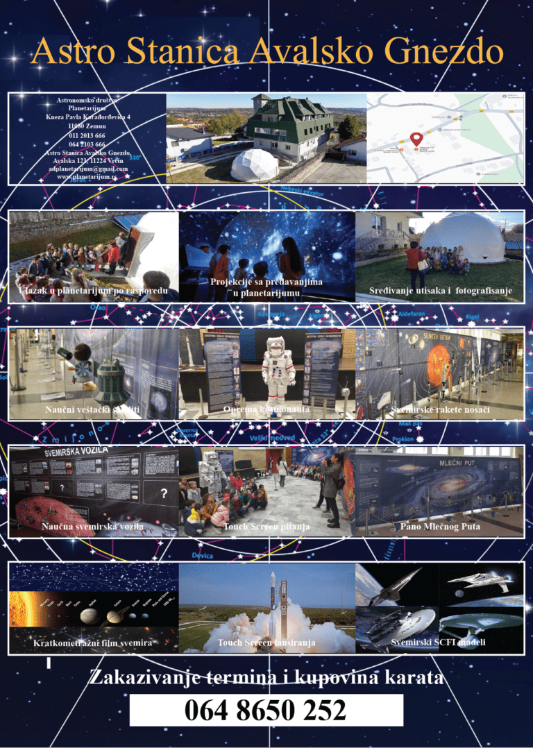Вести друштва и занимљивости Вести нашег друштва као и разне занимљивости се приказују на овој страни и редовно ћемо их ажурирати. Неки догађаји су се одиграли у сарадњи са аероклубом Фрањо Клуз као и са друштвом Милутин Миланковић. Šta donosi Artemis 2: objašnjava dr Slaviša Milisavljević posted on 15. април 2026. Naš direktor dr Slaviša Milisavljević govorio o radijaciji u misiji Artemis 2 posted on 15. април 2026. Zvaničan plakat za Astro Stanicu Avalsko Gnezdo za 2026. godinu posted on 20. јануар 2026. ИНТЕРАКТИВНА ИЗЛОЖБА МОДЕЛА СВЕМИРСКИХ ЛЕТЕЛИЦА, ПАНОА, ОПРЕМЕ posted on 26. октобар 2025. SVEMIRSKA STANICA MIR SPREMNA ZA IZLOŽBE posted on 27. јул 2024. ISS (International Space Station) U NAŠOJ KOLEKCIJI MODELA posted on 26. март 2024. 1 2 3